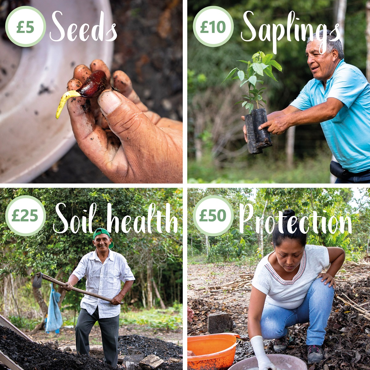 - £25 – Can help provide fertiliser for a family each month to create nutrient rich soil for healthy trees and crops.